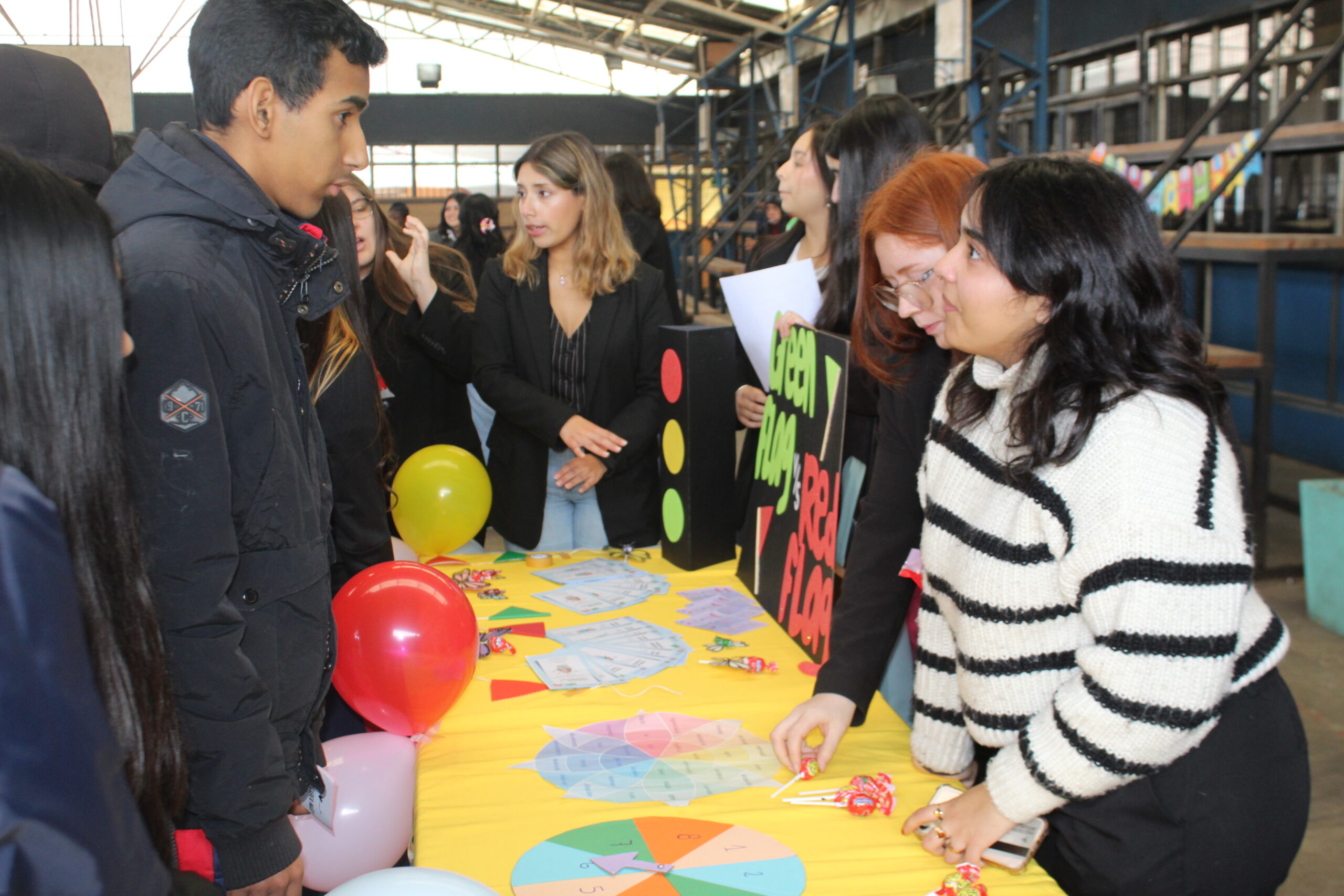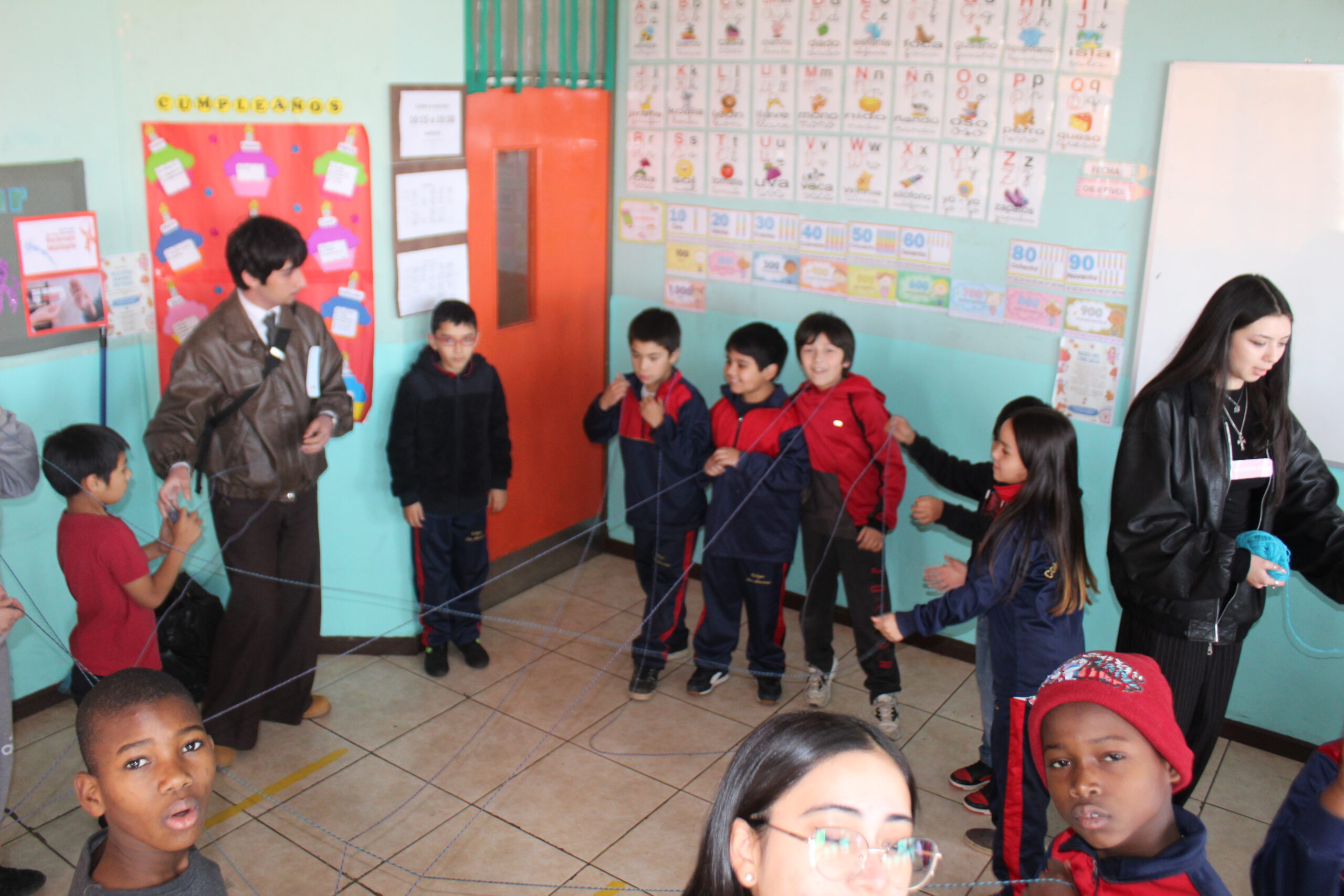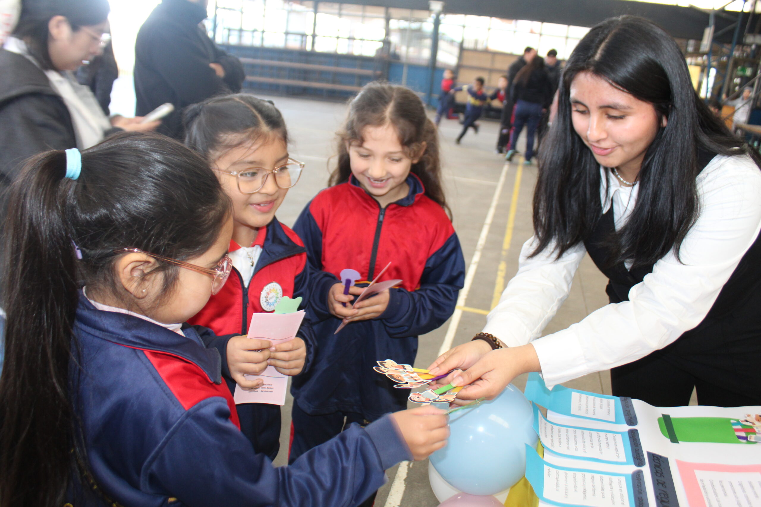 Posteriormente, la jornada continuó en el patio techado del colegio, donde se instaló un stand interactivo de actividades especialmente diseñado para reforzar los aprendizajes del día. Juegos, reflexiones colectivas, materiales visuales y propuestas creativas esperaban a nuestros estudiantes para seguir celebrando juntos una convivencia escolar basada en el buen trato, la escucha activa y la colaboración.