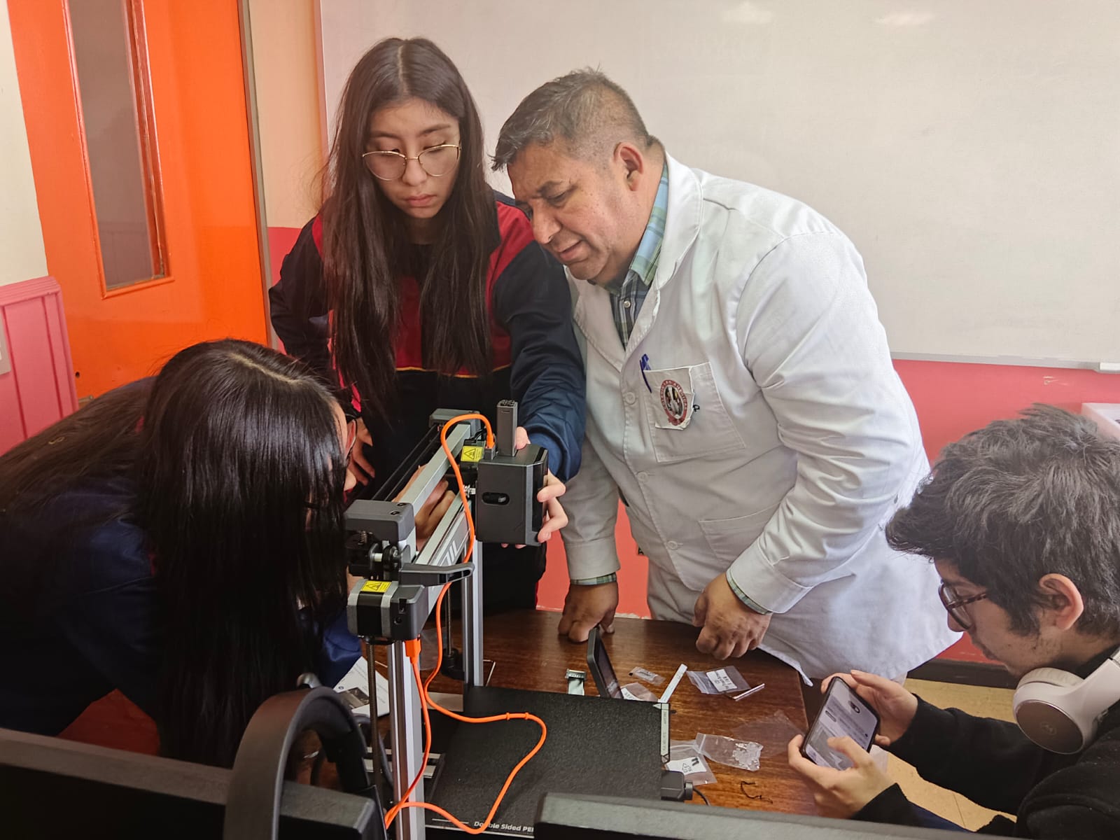 Estudiantes de cuarto medio participaron activamente en el armado y configuración de la impresora, aprendiendo sobre su tecnología, funcionamiento. Les compartimos algunas imágenes de este emocionante proceso 📸👇